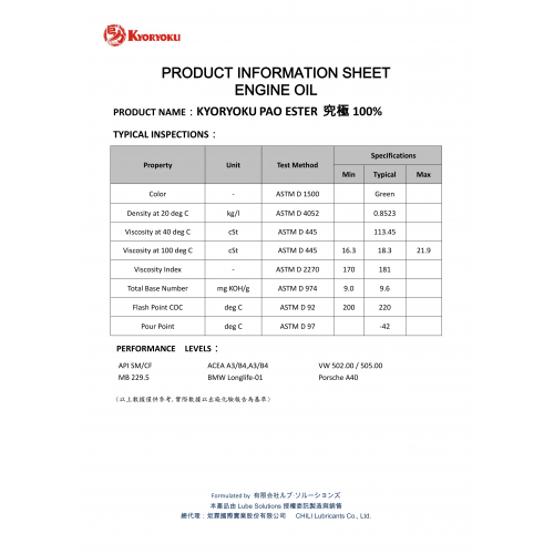 ♦採用 100% PAO+ESTER 精製而成