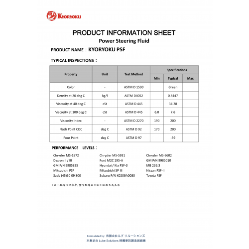 全合成動力方向機油